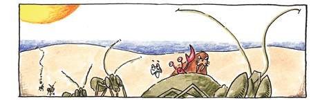 Of course their boat sinks almost instantly, and they are washed up on an island populated by a society of huge ants that is very eager to eat them up.