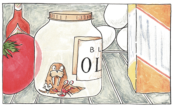 After escaping from a locked refrigerator they manage to use some magic Swiss cheese to escape the clutches of the ants and return home; this time floating in a gigantic olive jar.