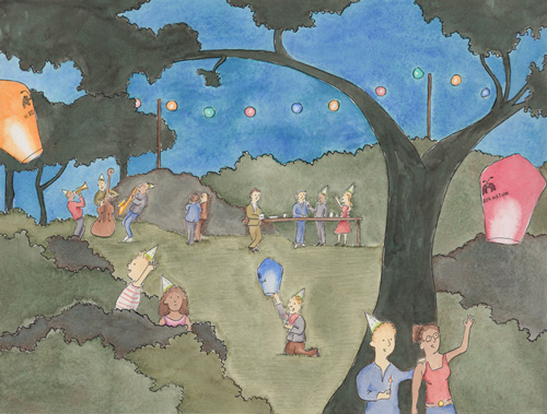 These were the largest watercolor designs I had ever attempted, and I must say they came out rather well. I was very much inspired by the works of Ukiyo-e masters, and tried to use areas of blank space and color to their best effect.