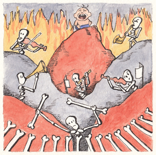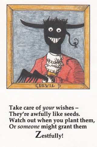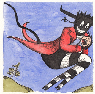 I started doing the pictures in pencil, with a somewhat different Devil, but I ended up doing it in watercolor.